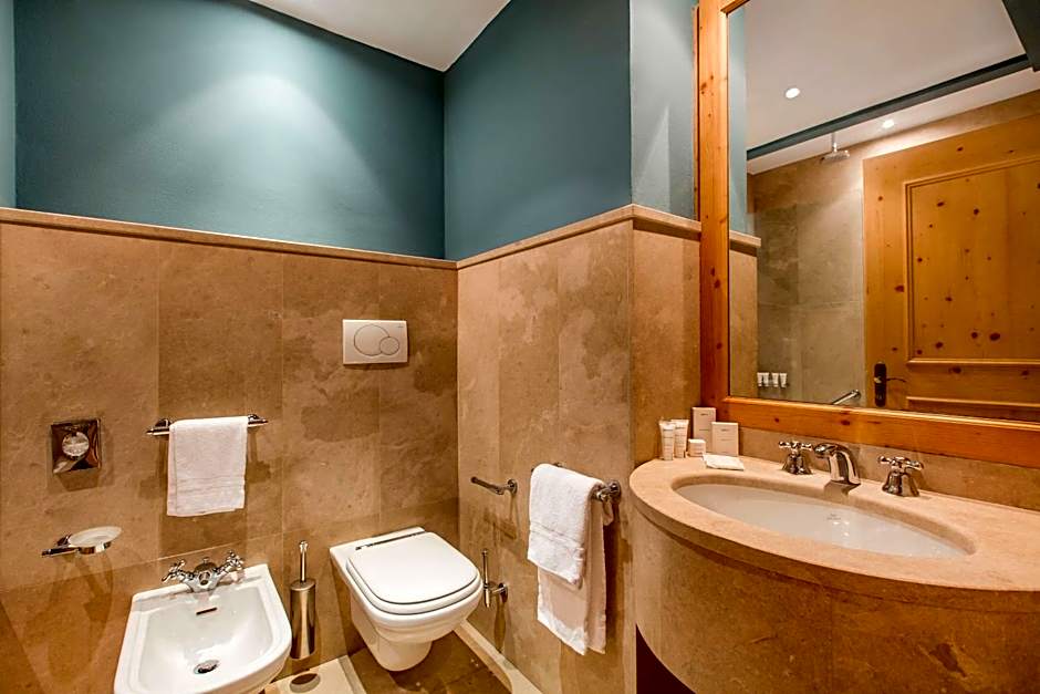 The apartment features a living room with a sofa bed and a kitchenette. Please note that the room is not equipped with air conditioning. The following amenities are available at the Grand Hotel Savoia, located directly across the street from Residence Savoia Palace: 1224 Bar Lounge & Terrace, The Savoy Restaurant, Breakfast Room, Grand Hotel Savoia Spa, Ski Room, Kids Club, and Service Parking